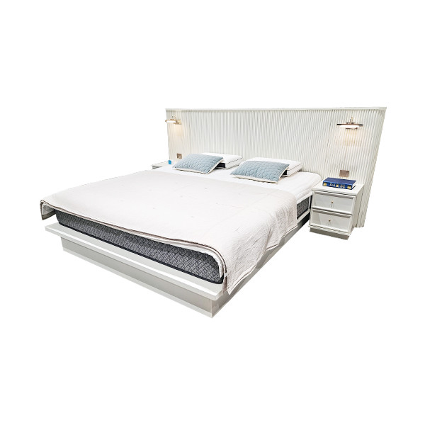 입체감있는 패턴의 템바보드 헤드프레임으로 우아한 분위기를 연출해주는 침대프레임.
