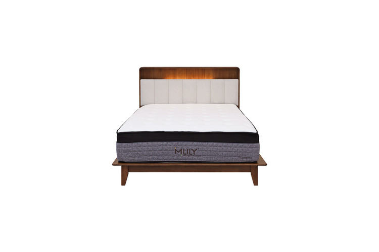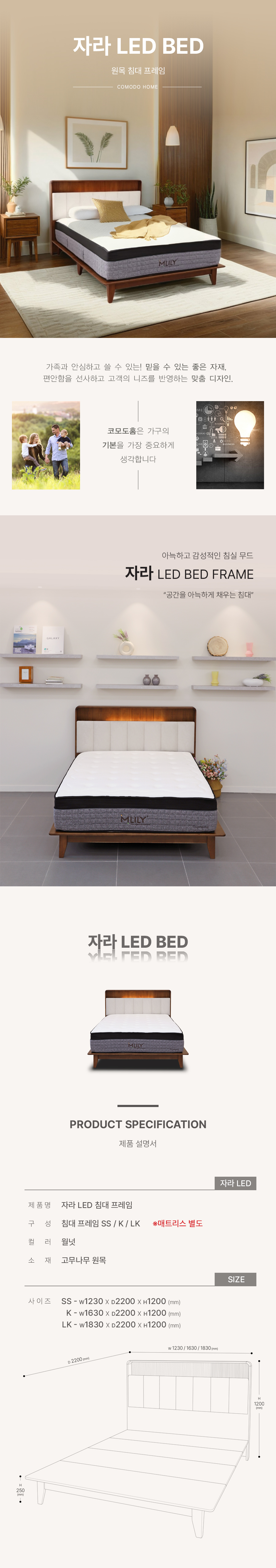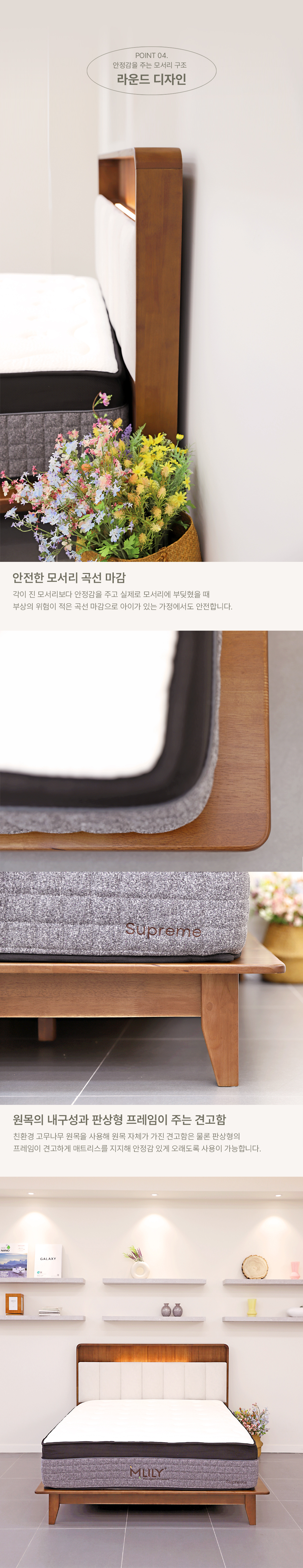 템바보드와 패브릭이 조합된 헤드보드가 감각적인 원목 침대 프레임