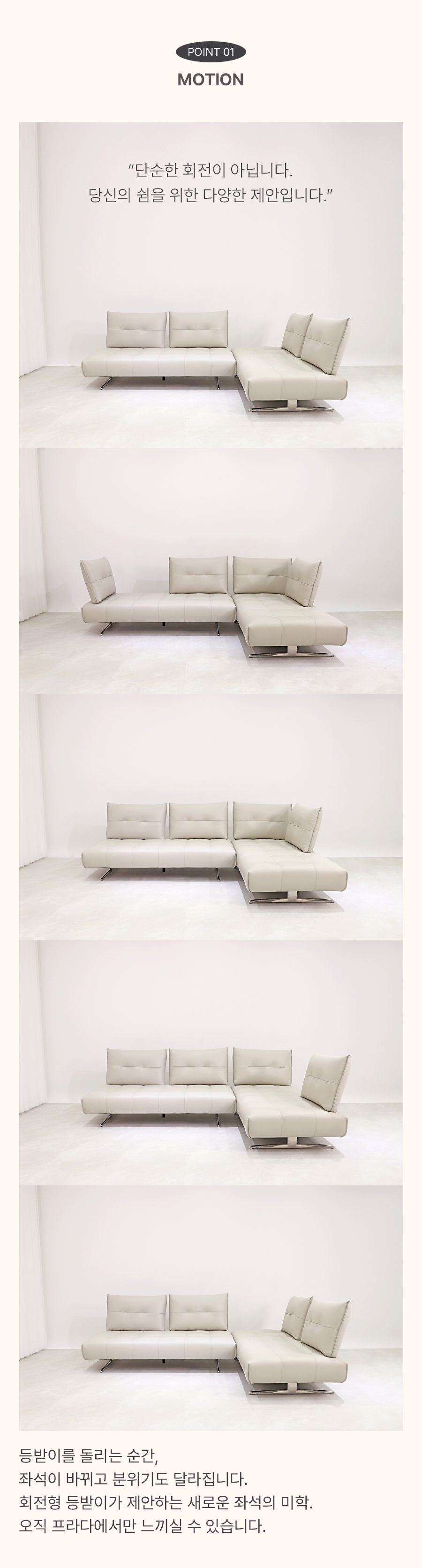 공간을 살아 움직이게 하는 무브먼트, 등받이 회전 소파.