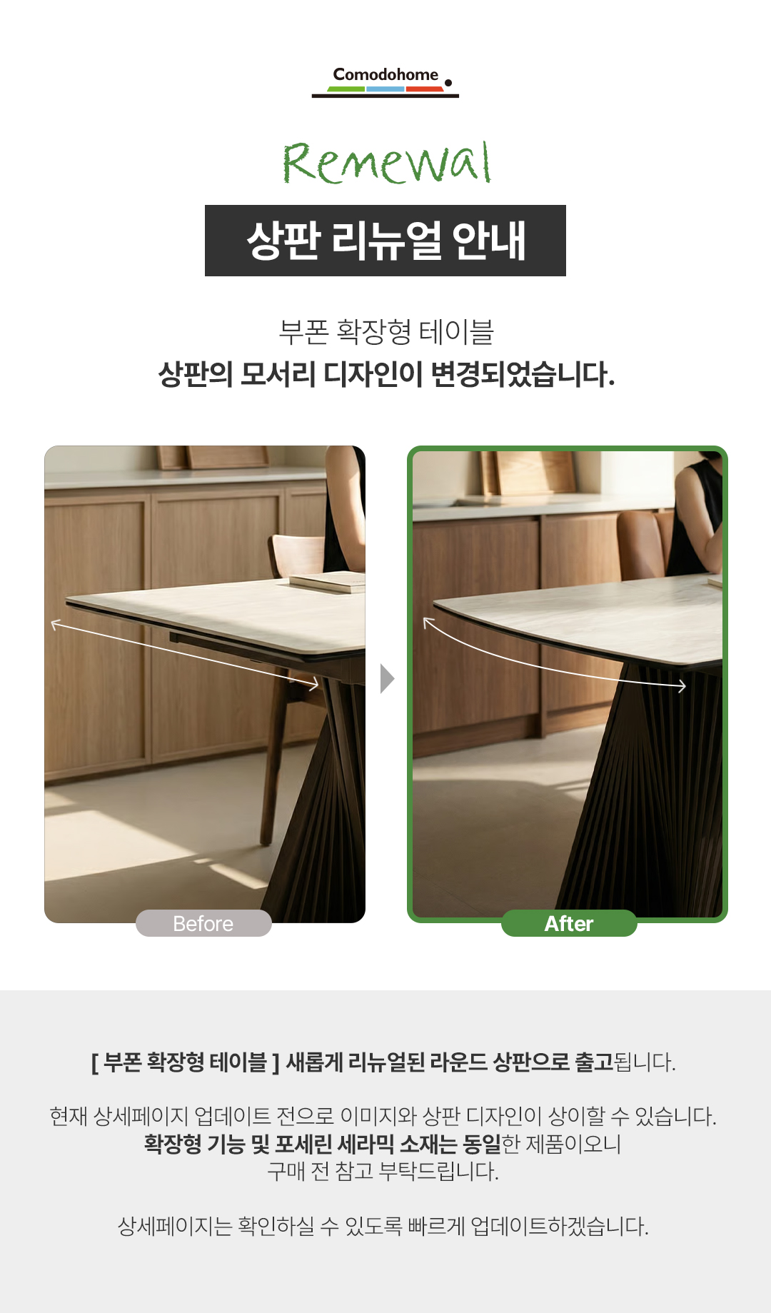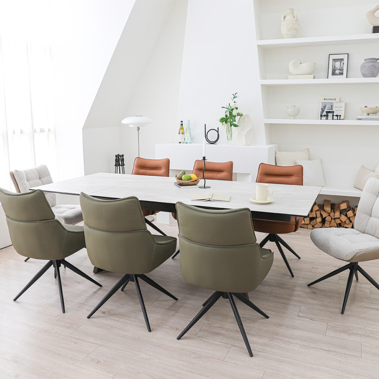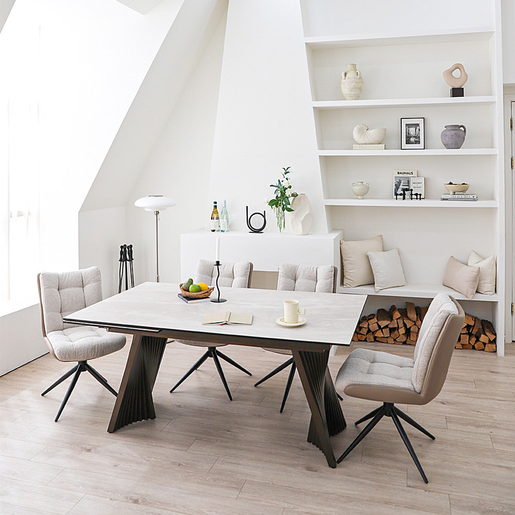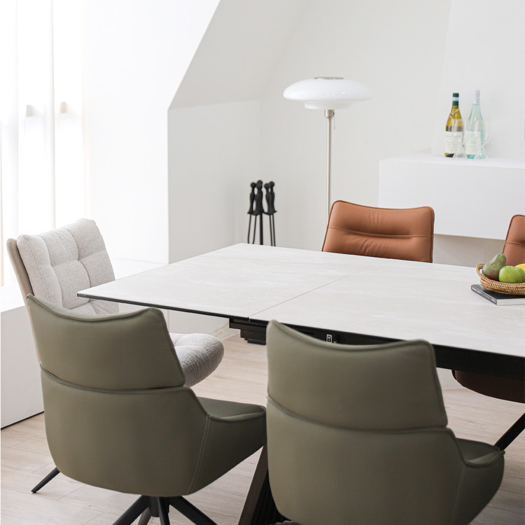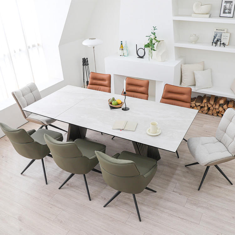 모던한 디자인에 확장형으로 공간 활용도를 더욱 높이는 인출식 포세린 세라믹 식탁