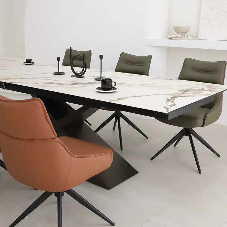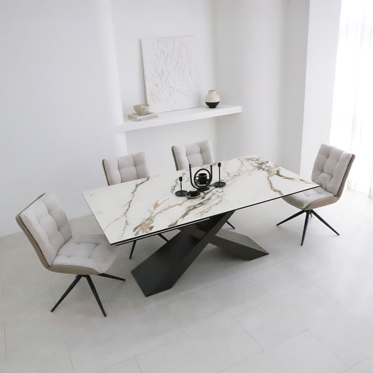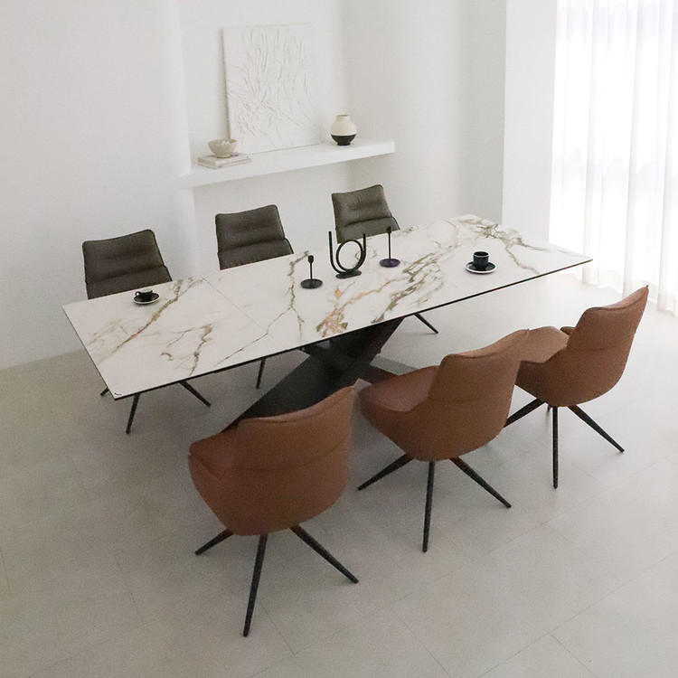 고급스러운 디자인, 견고한 포세린 세라믹상판의 인출식 확장형 식탁