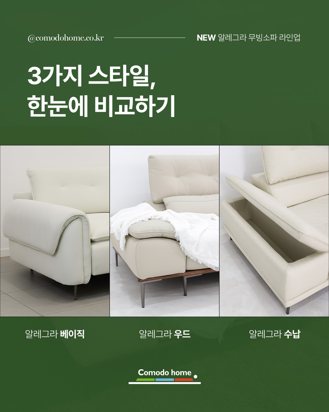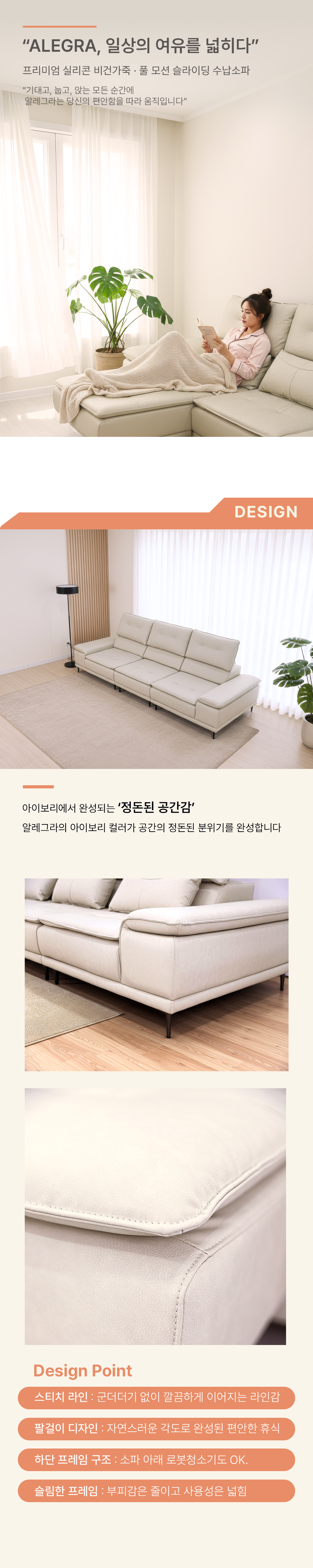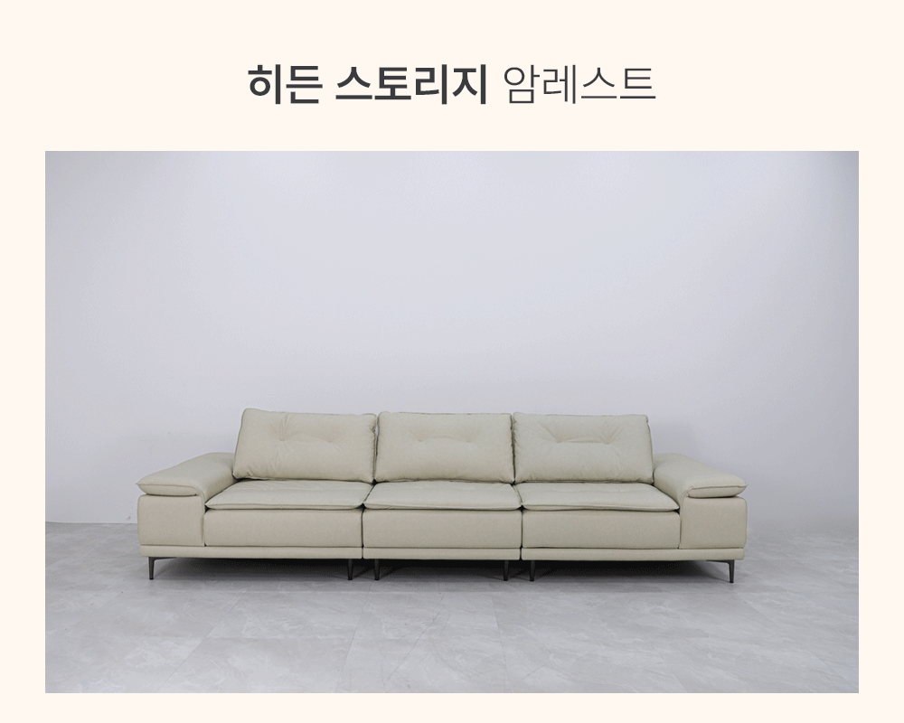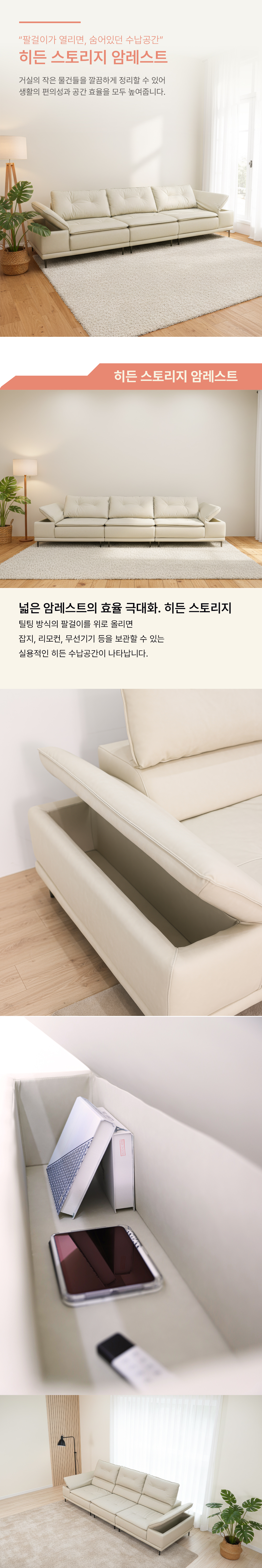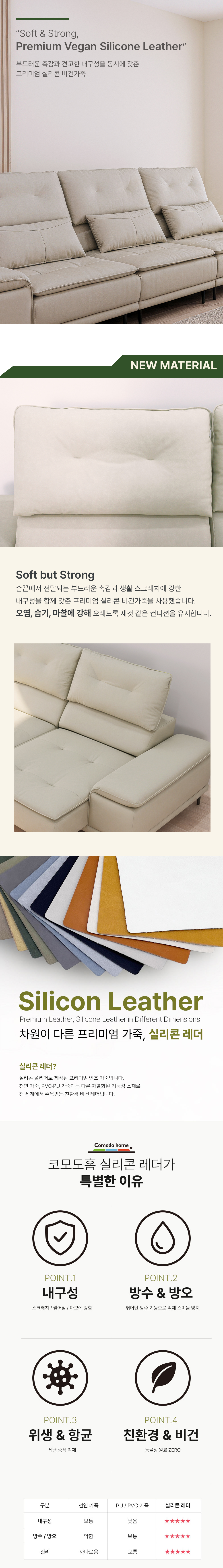 스크래치와 생활방수가 가능한 신소재 비건 실리콘 가죽으로 제작된 알레그라 수납소파.