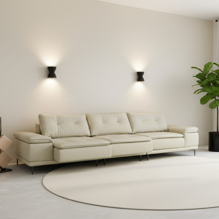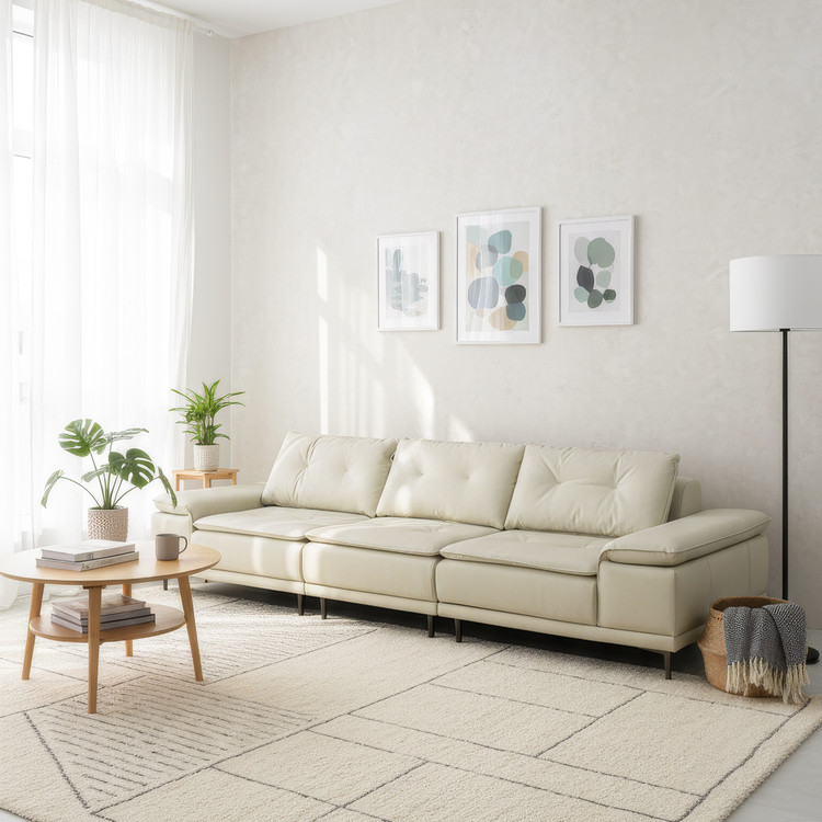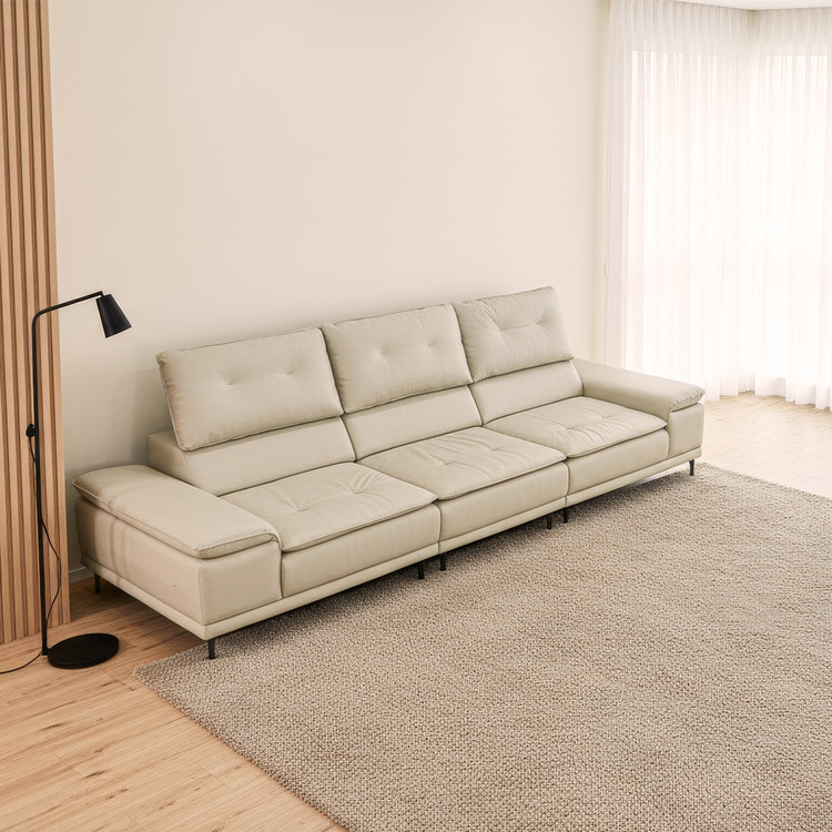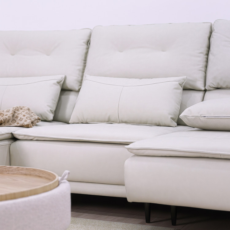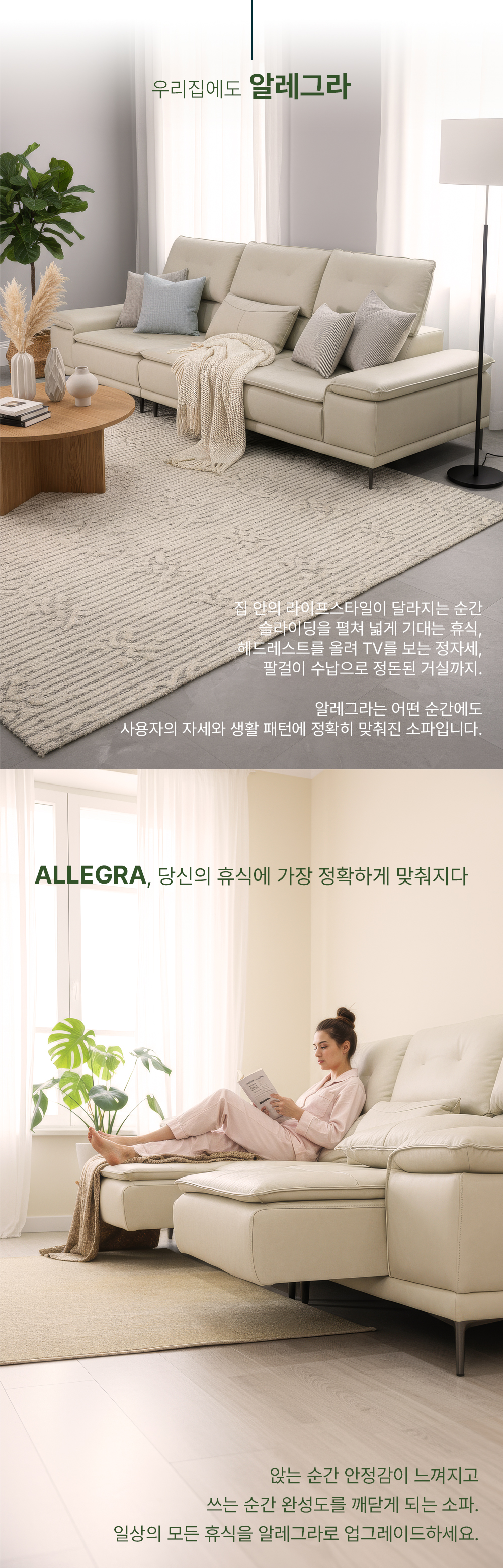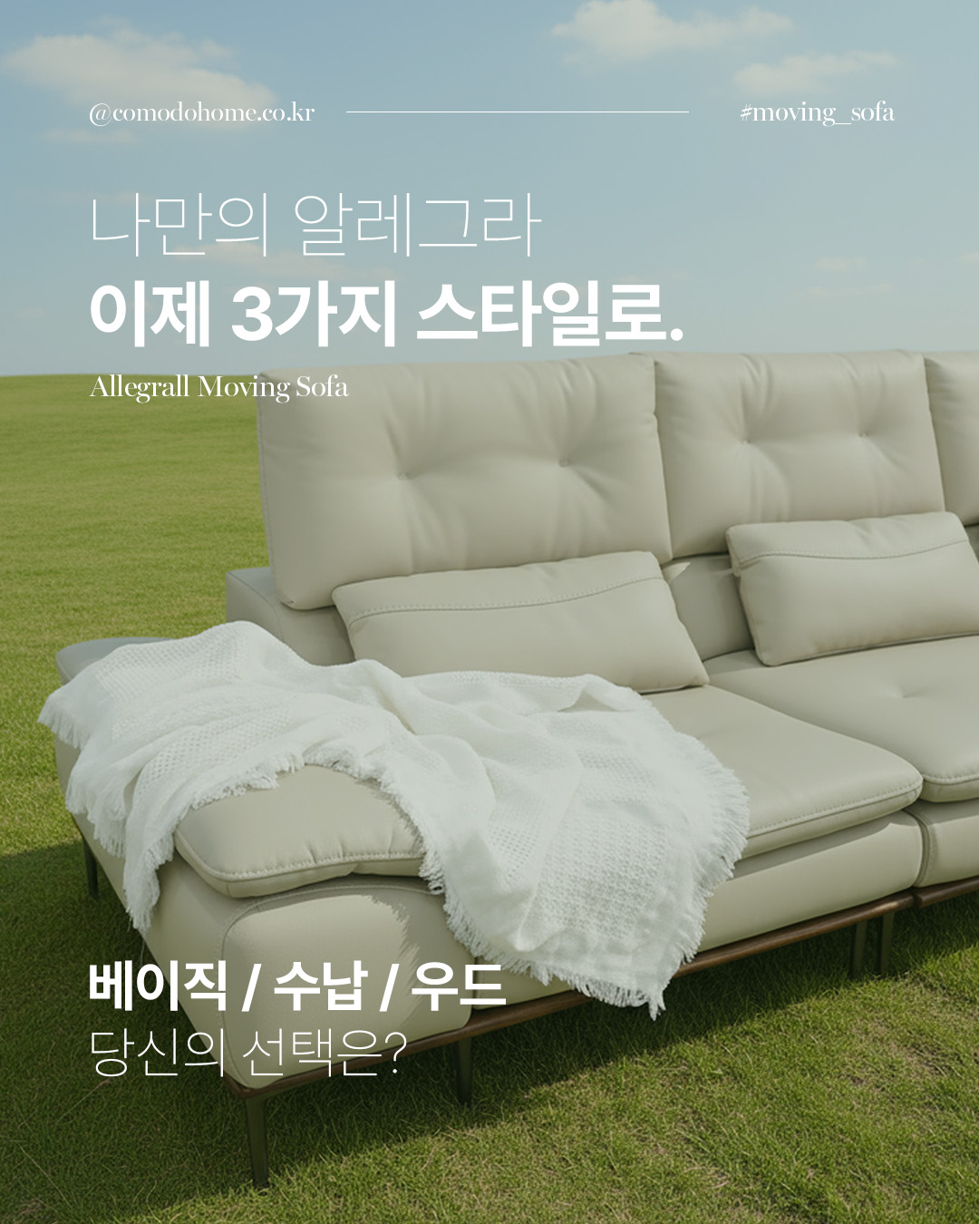 스크래치와 생활방수가 가능한 신소재 비건 실리콘 가죽으로 제작된 알레그라 수납소파.
