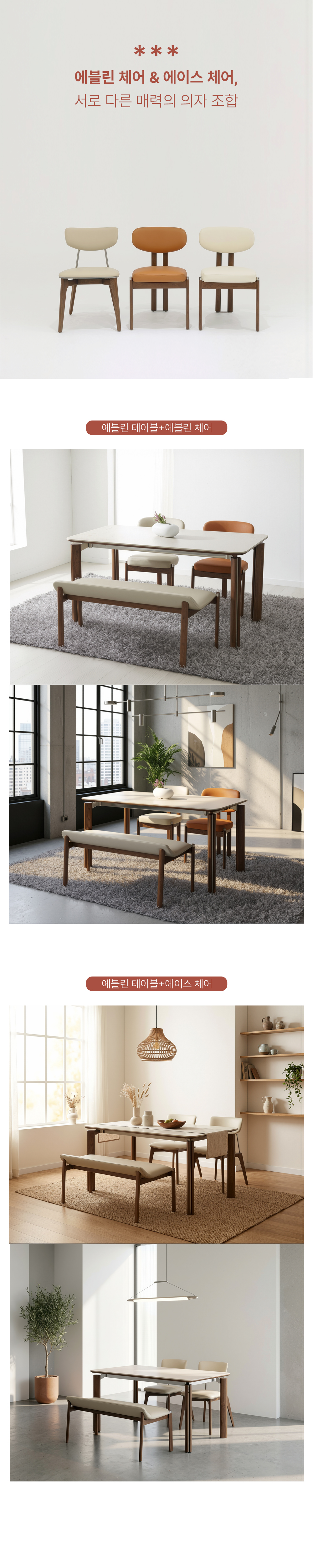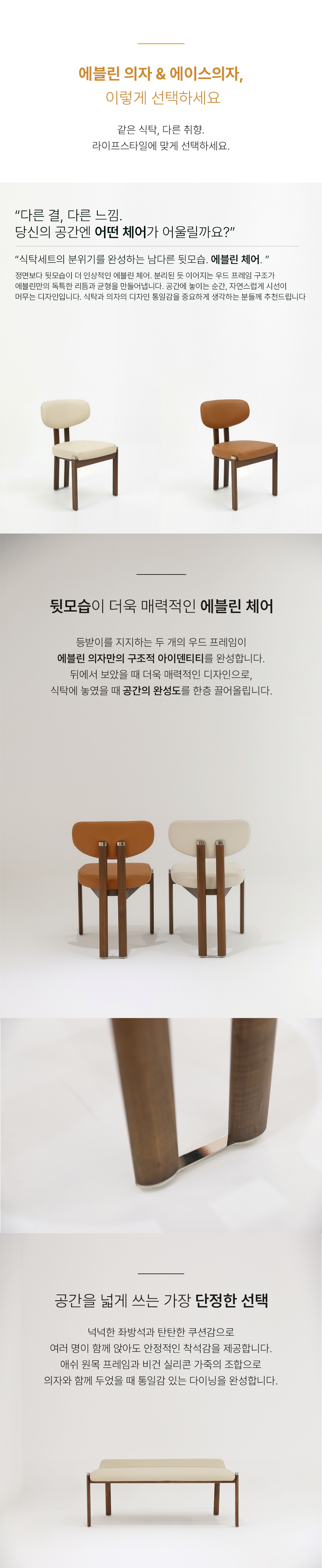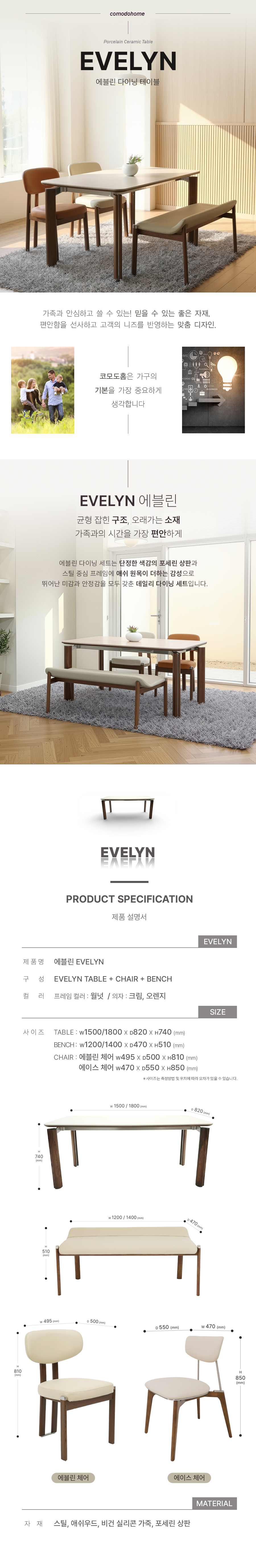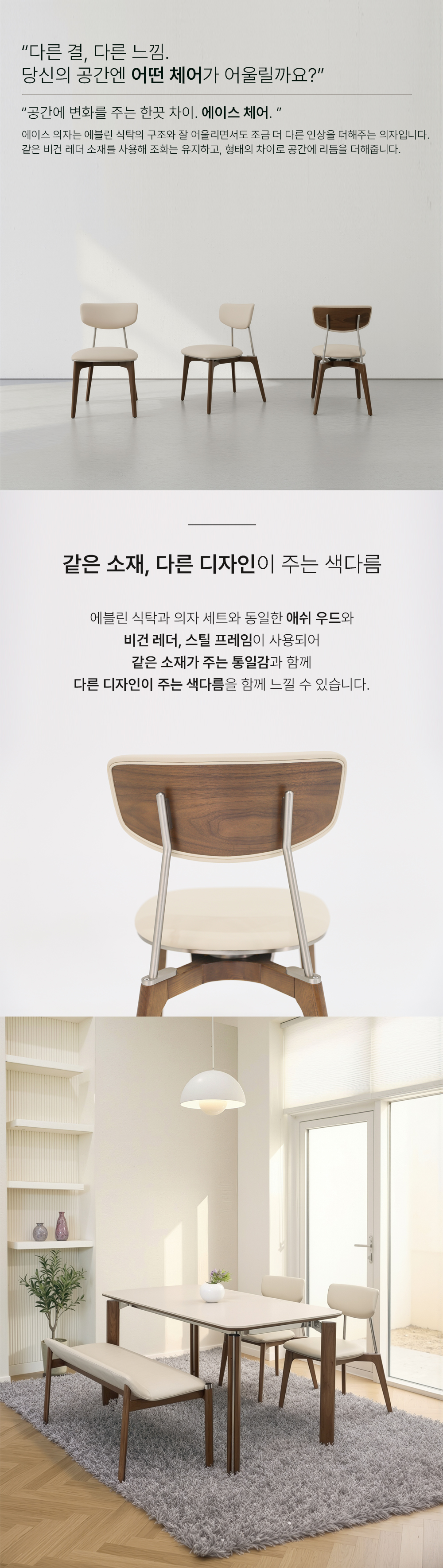 균형 잡힌 구조적인 디자인, 포세린, 애쉬우드, 스틸, 비건 레더. 오래 가는 좋은 소재로 가족과의 시간을 가장 편안하게 만들어주는 식탁세트.