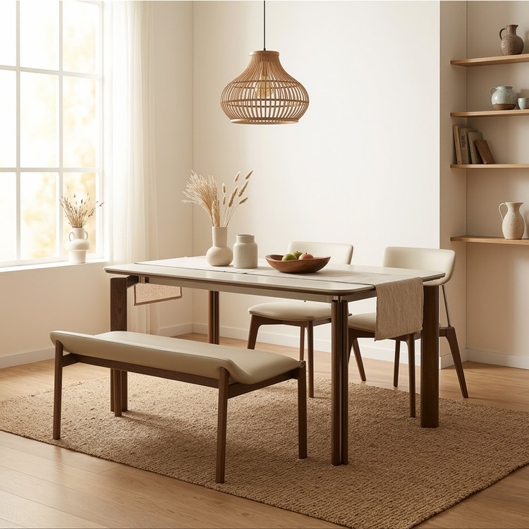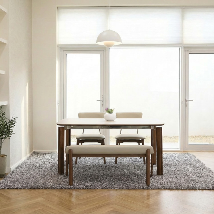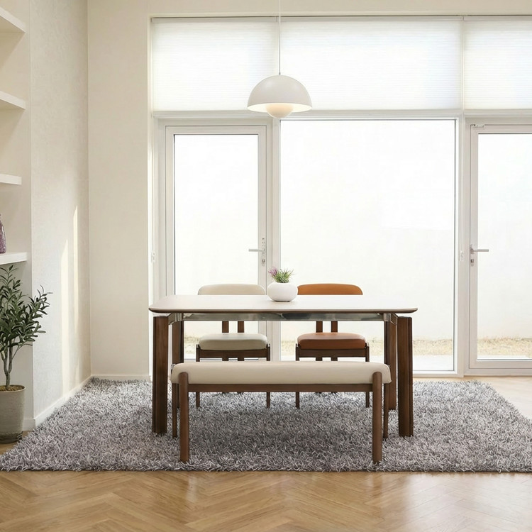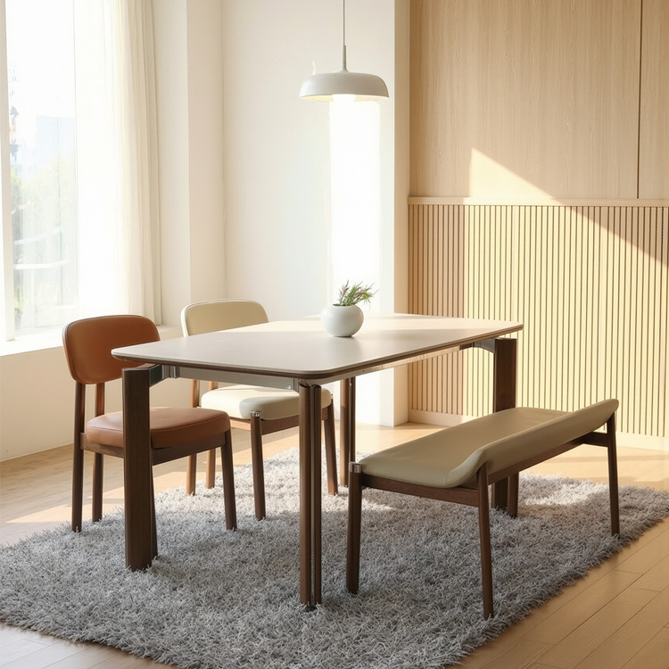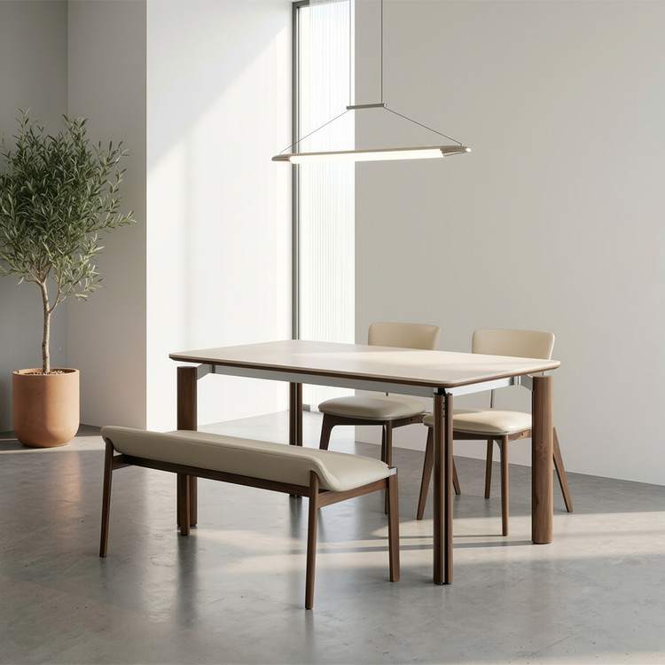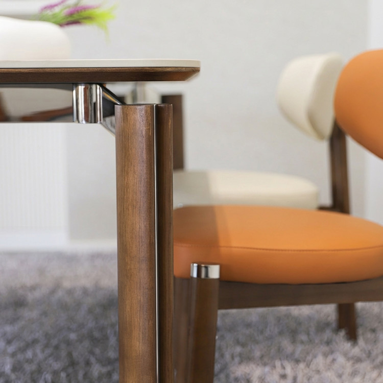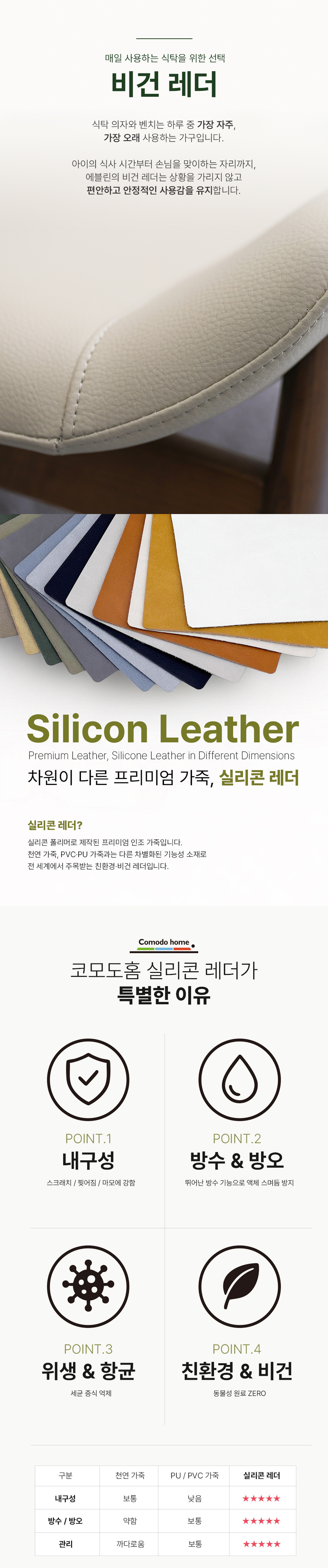 균형 잡힌 구조적인 디자인, 포세린, 애쉬우드, 스틸, 비건 레더. 오래 가는 좋은 소재로 가족과의 시간을 가장 편안하게 만들어주는 식탁세트.