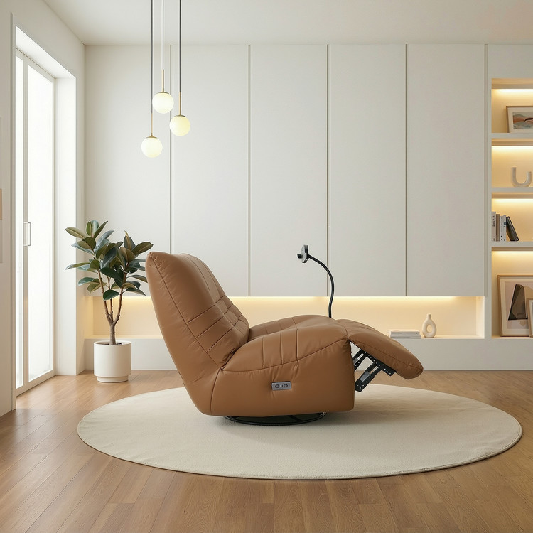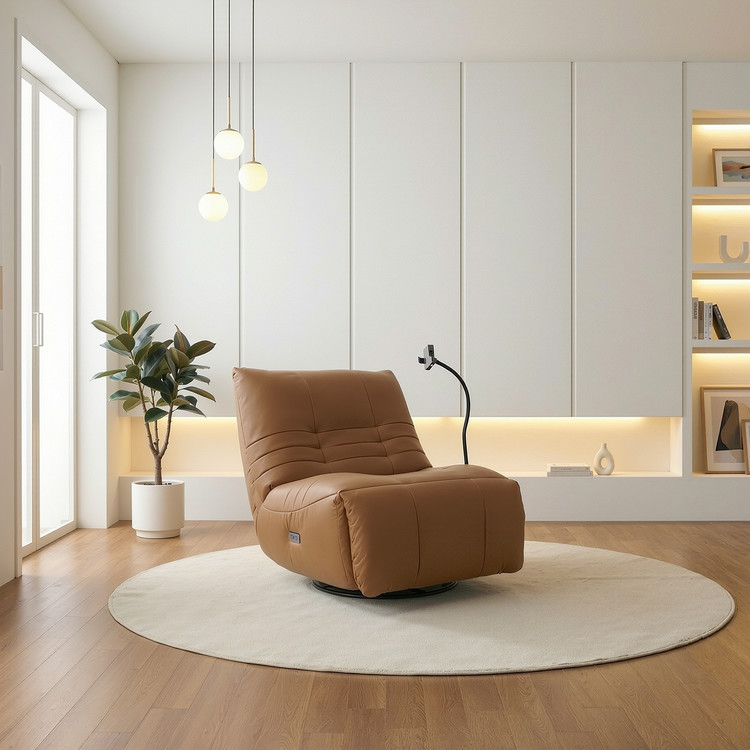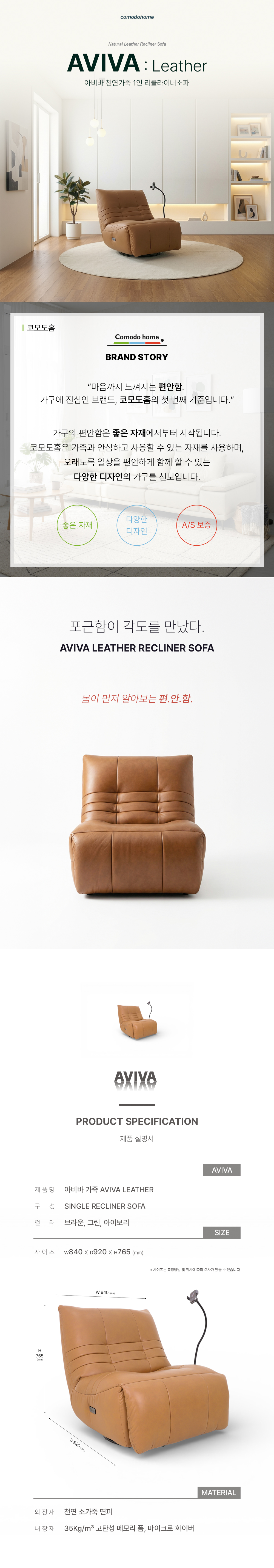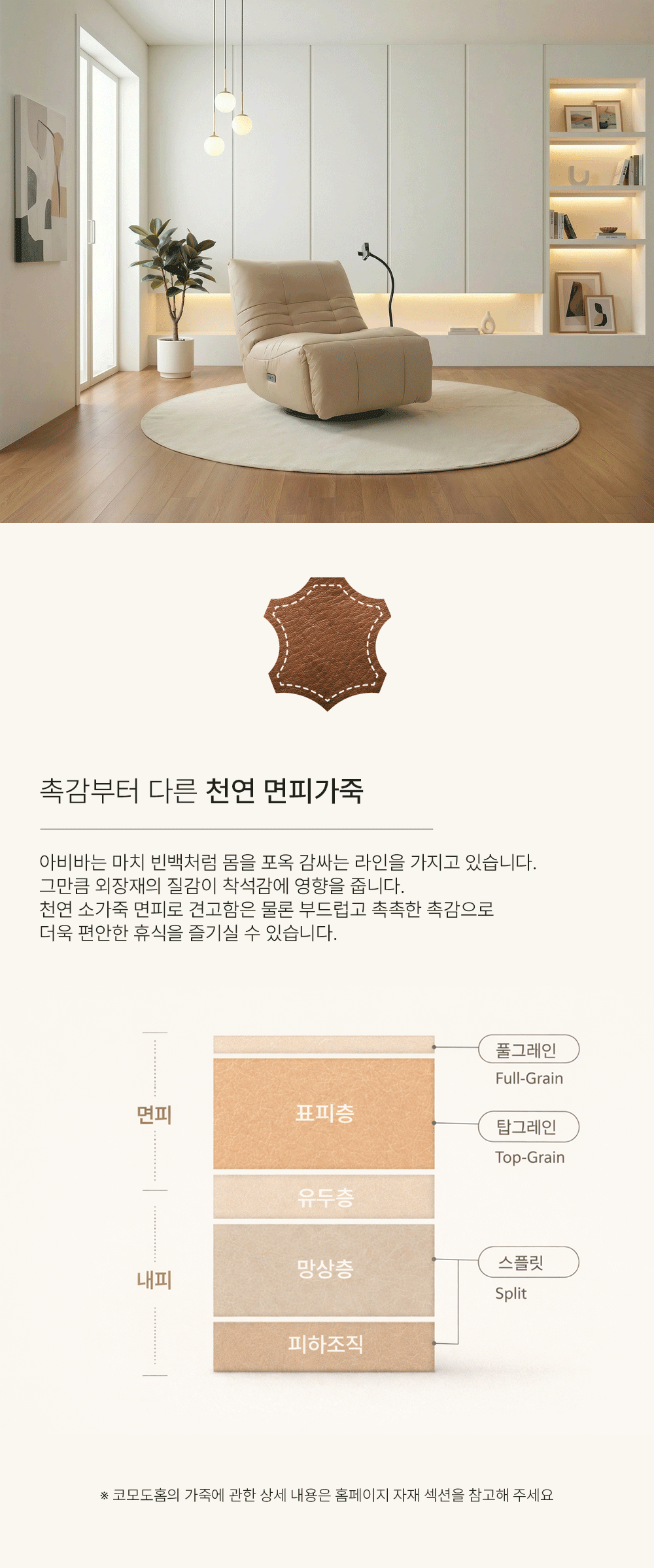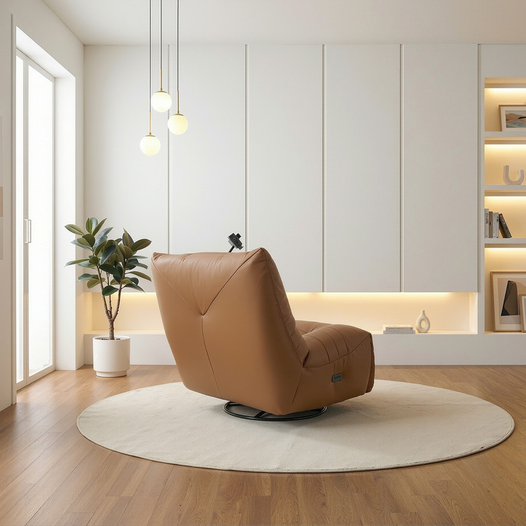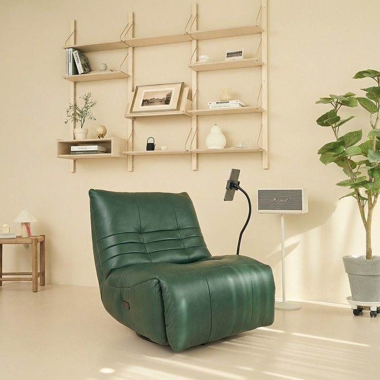 몸에 착 감기는 착석감의 천연 면피 가죽으로 만든 1인 리클라이너.