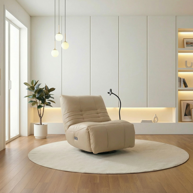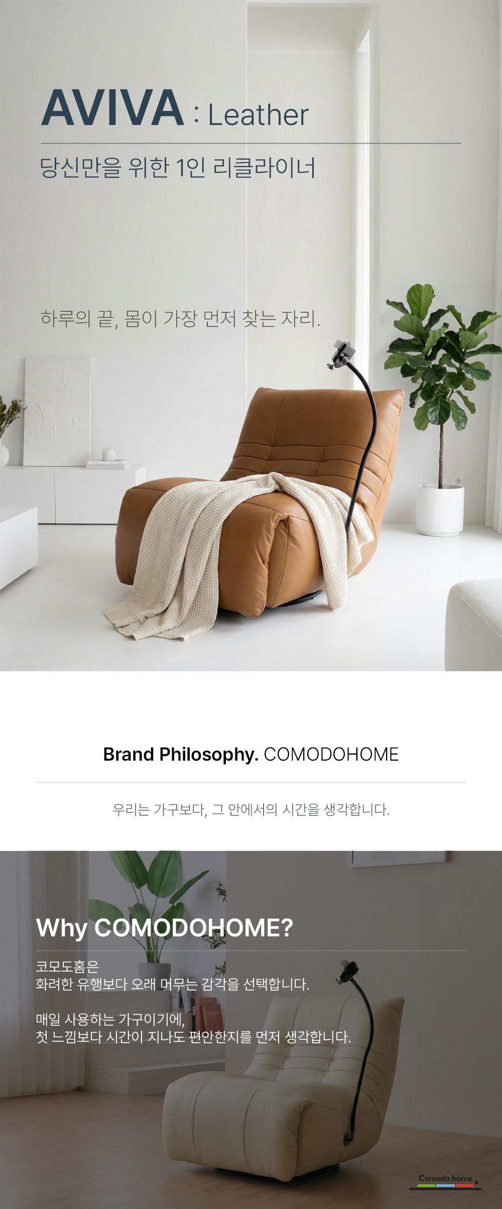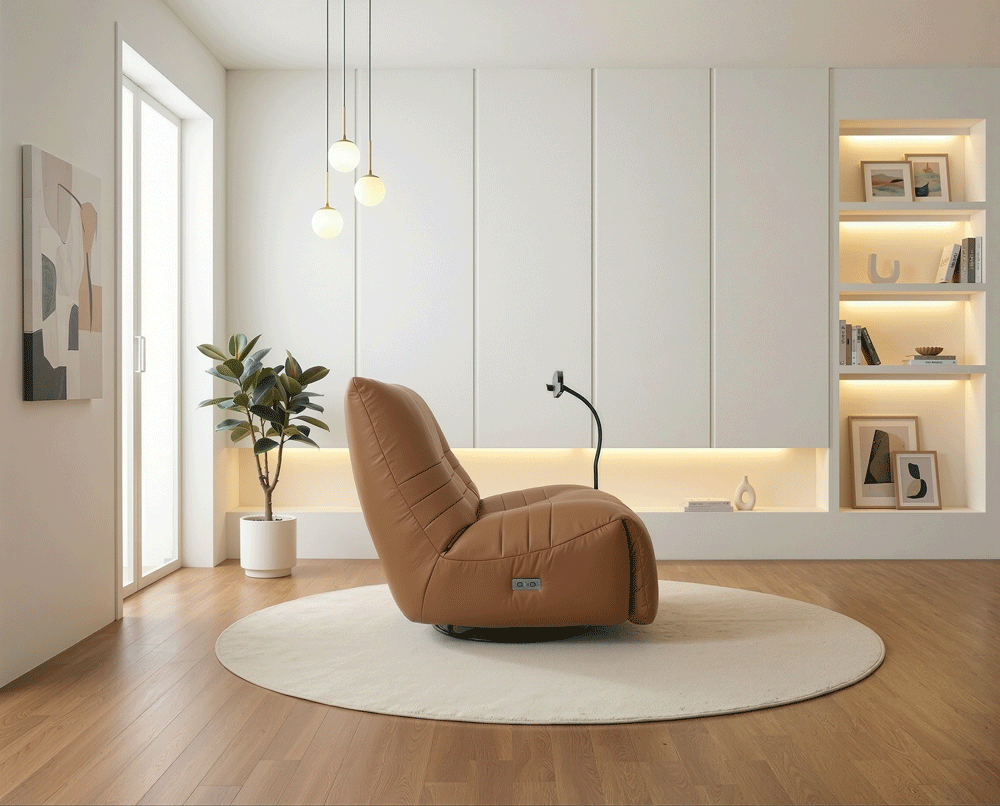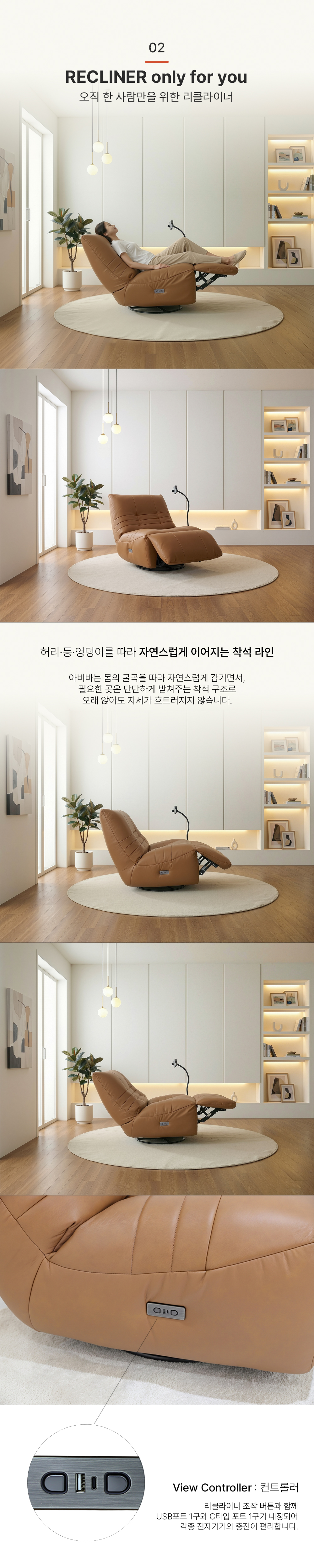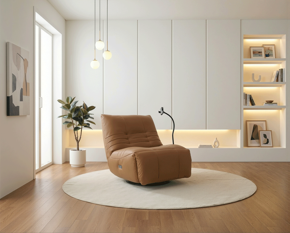 몸에 착 감기는 착석감의 천연 면피 가죽으로 만든 1인 리클라이너.