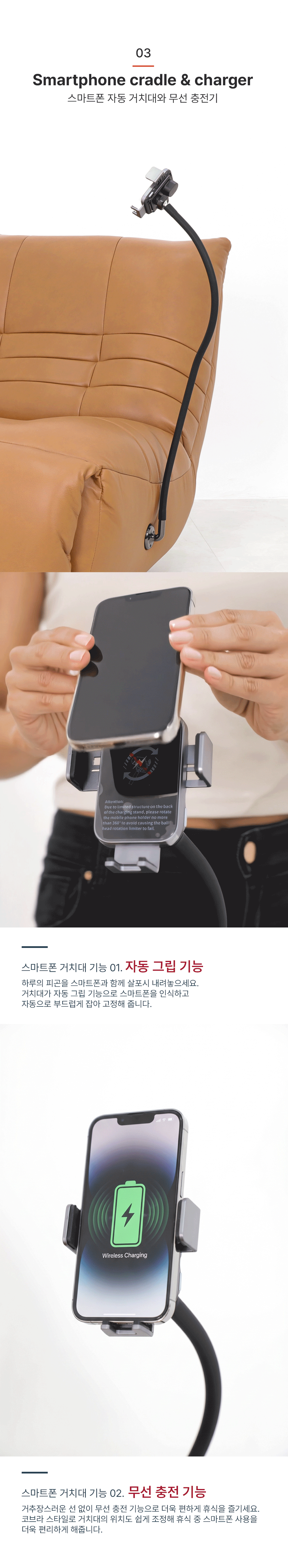 스마트폰 자동 거치대와 무선 충전까지. 더욱 스마트한 휴식.