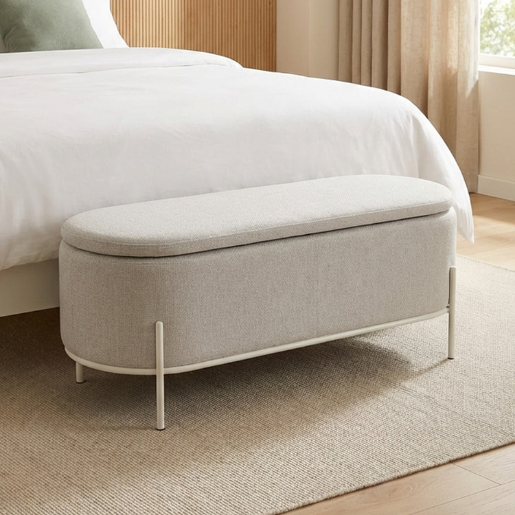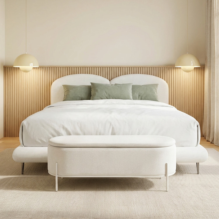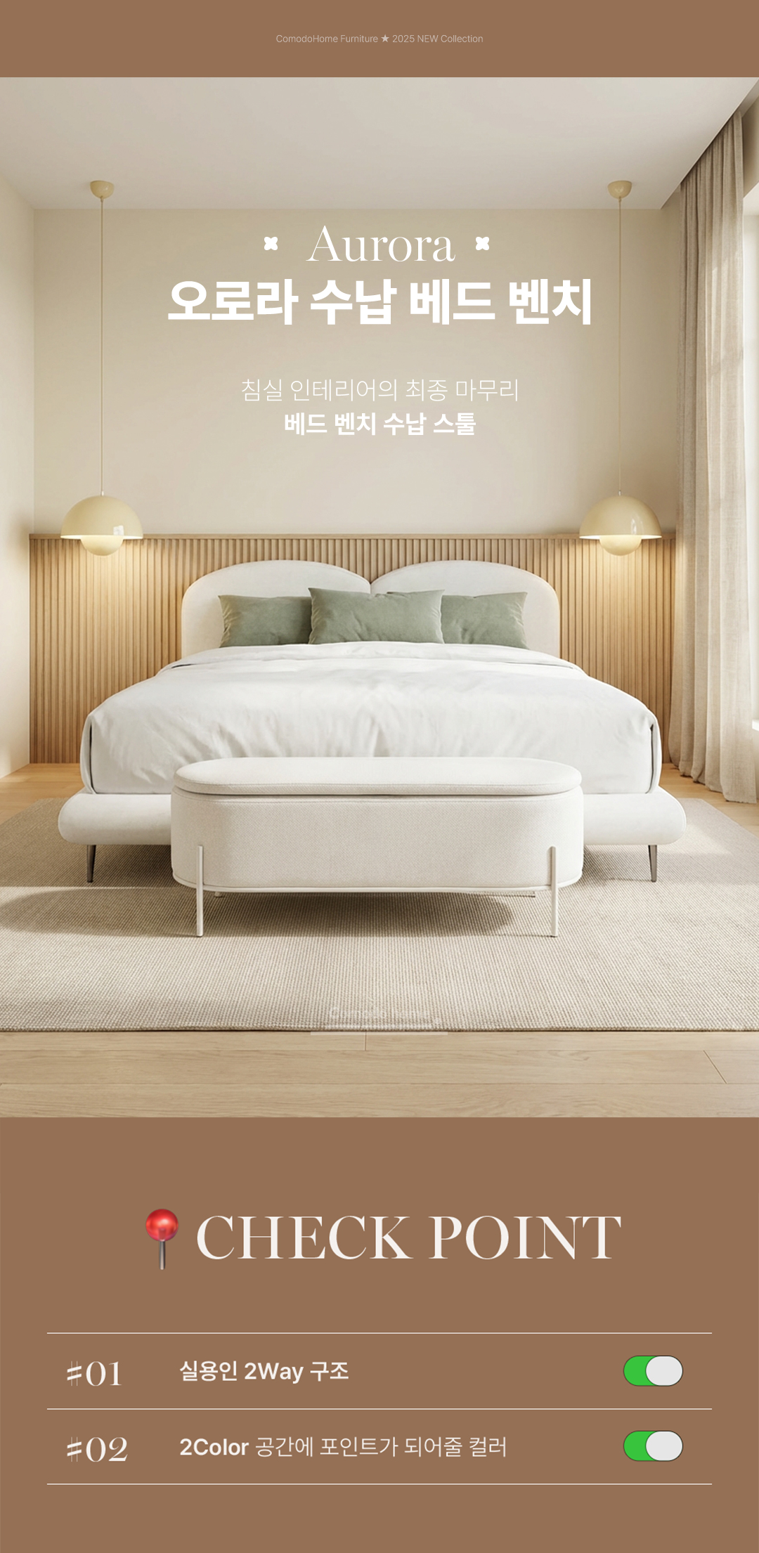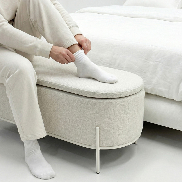 침실 인테리어의 최종 마무리. 베드 벤치 수납 스툴