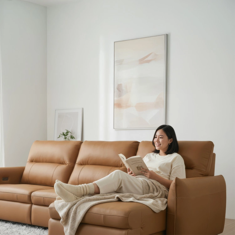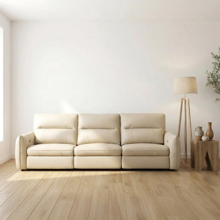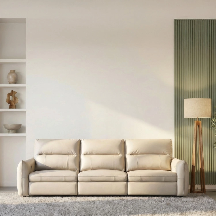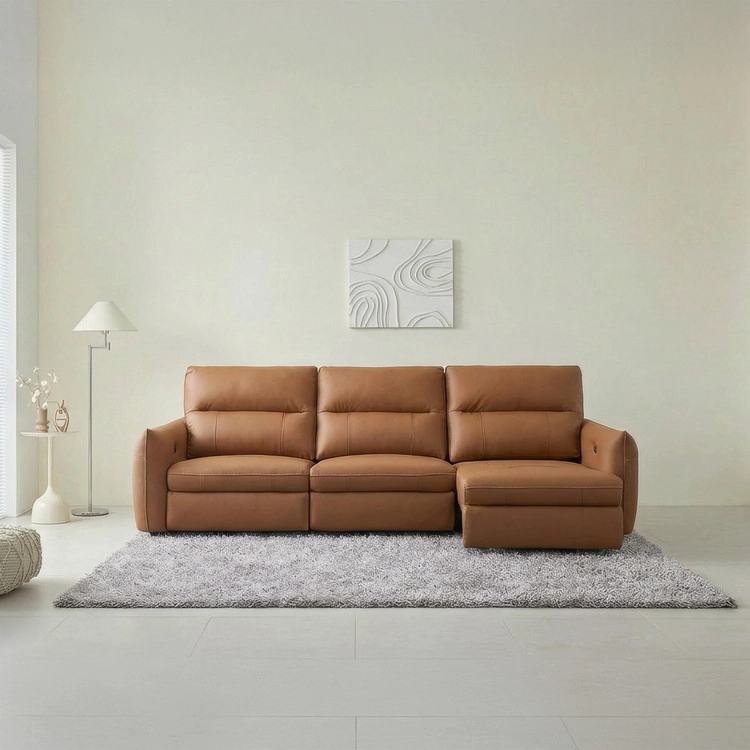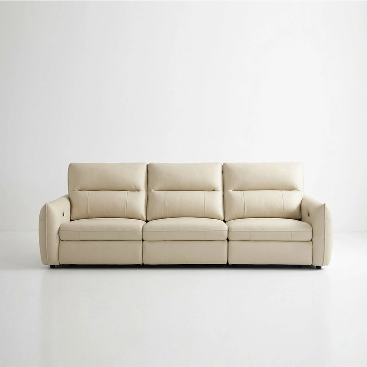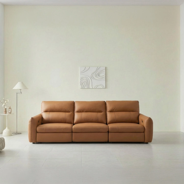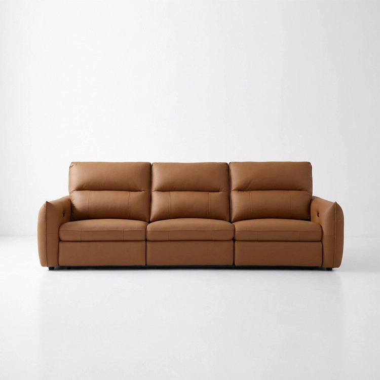 천연 면피 가죽 슬라이딩 소파. 모던 베이직 디자인.