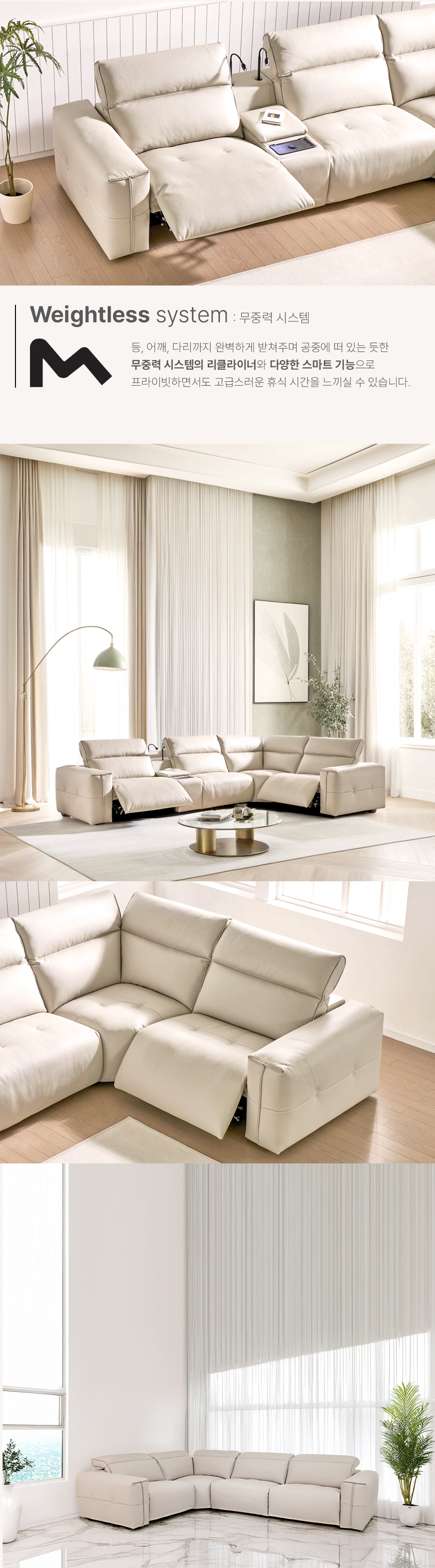 프리미엄 라인의 천연 가죽 코너형 리클라이너 소파